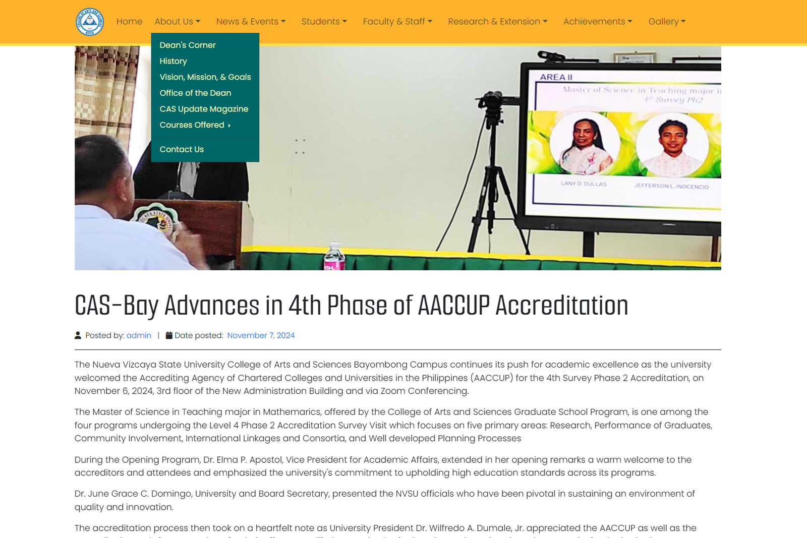 Development of the Web Portal of the College of Arts and Sciences of Nueva Vizcaya State University – Bayombong Campus Research